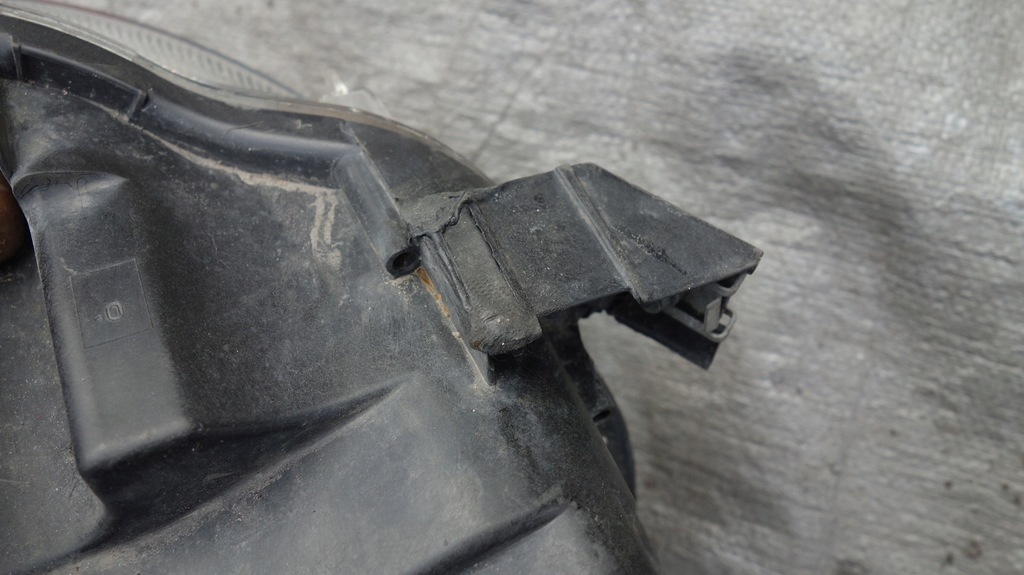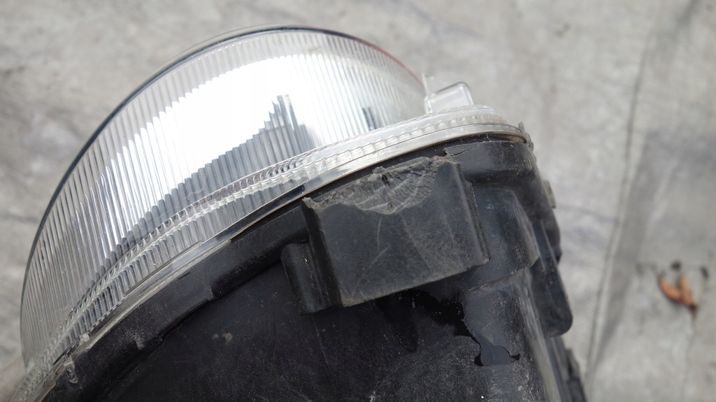 Reflector original usado, rayones en el vidrio. Dos anzuelos reparados, uno dañado. versión europea.