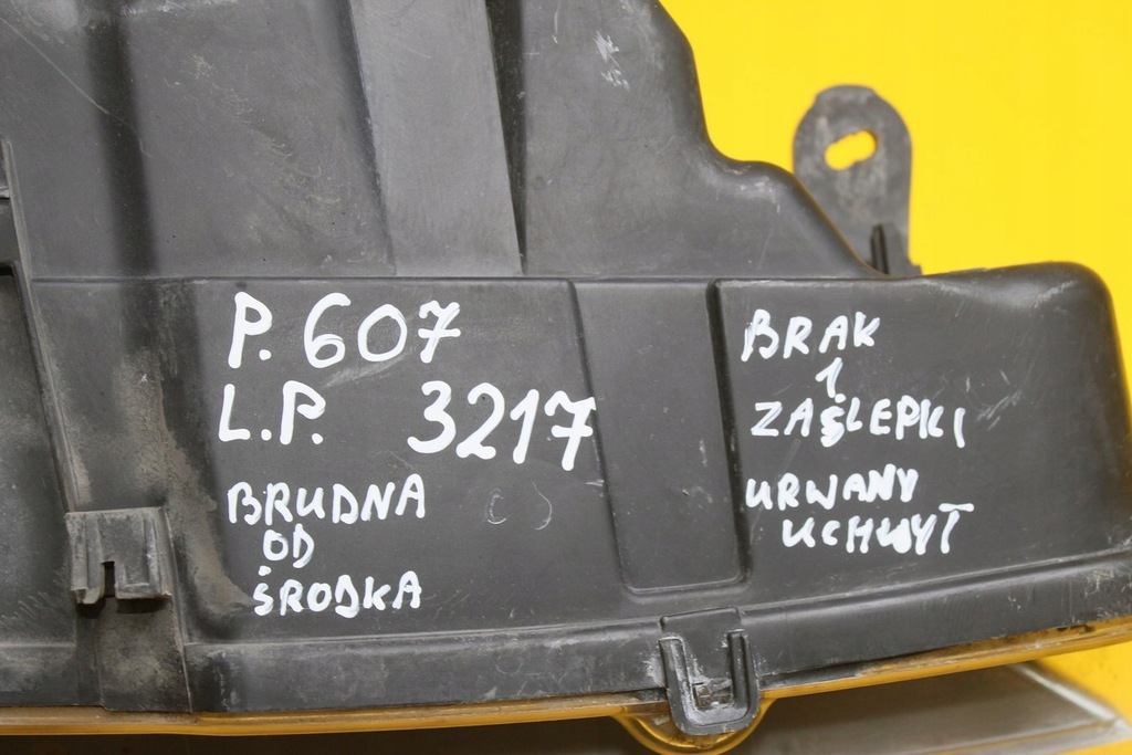 LA LAMPARA DELANTERA IZQUIERDA TIENE LA FALTA DE 1 TAPÓN MANGO ROTO Y LA LAMPARA SUCIA POR INTERIOR